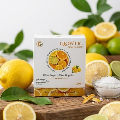 Glowtic Lemon Soap is a gentle yet effective lemon bathing soap for skin brightening, designed to cleanse deeply without being harsh on the skin. Enriched with lemon extracts and vitamin C, it helps remove impurities, control excess oil, and improve skin freshness. If you’re searching for a lemon soap for glowing skin, a daily use brightening soap, or a face and body soap for dull skin, Glowtic Lemon Soap is an ideal choice.